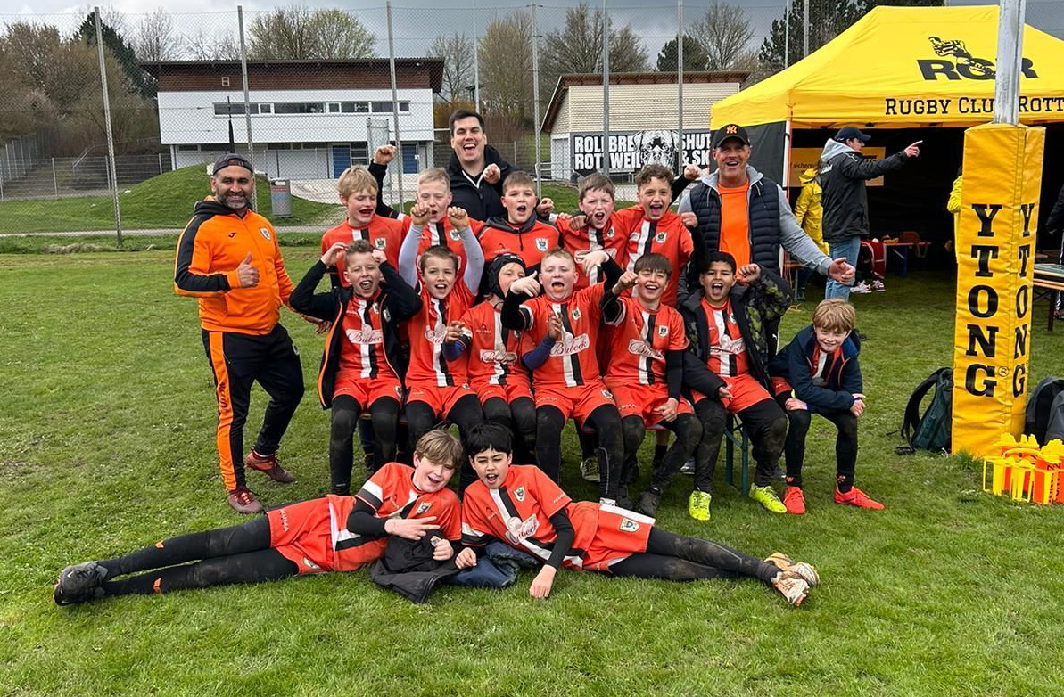Unsere U12 bestritt das vorletzte SAS Turnier der Saison und war zu Gast beim RC Rottweil. Schon am frühen Morgen waren unsere Kids gemeinsam mit den Trainern unterwegs. Vor Ort nahezu perfektes Rugbywetter: nass, aber etwas kalt. Die Stimmung war bombastisch und unsere Kids konnten 5 von 6 Spiele deutlich für sich entscheiden. Ein Spiel ging zwar Unentschieden aus, aber der erste Platz wurde trotzdem hart ergattert. Nun geht es zum entscheidenden und allerletzten SAS Turnier nach Mannheim, wo im Rahmen der Bundesgartenschau zwischen Primeln und Tulpen unsere U12 den Titel als Baden-Württemberg Meister besiegeln möchten. Die Chancen stehen laut SAS Wertung ziemlich gut, doch man soll den Tag nicht vor dem Abend loben!